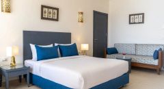 126 camere, tutte dotate di servizi privati, aria condizionata, TV satellitare con ricezione di canali italiani, telefono, cassetta di sicurezza, minibar (1 bottiglia d’acqua per persona al giorno inclusa, restanti consumazioni a pagamento), asciugacapelli, balcone o terrazza. Possibilità di sistemazione con vista giardino, piscina o mare. Sono disponibili doppie standard (massima occupazione 3 adulti o 2 adulti + 1 bambino), doppie con letti a castello (massima occupazione 3 adulti + 1 bambino o 2 adulti + 2 bambini), suite con area soggiorno separata (massima occupazione 2 adulti), e family room con due ambienti separati e un bagno (massima occupazione 4 adulti o 3 adulti + 1 bambino).